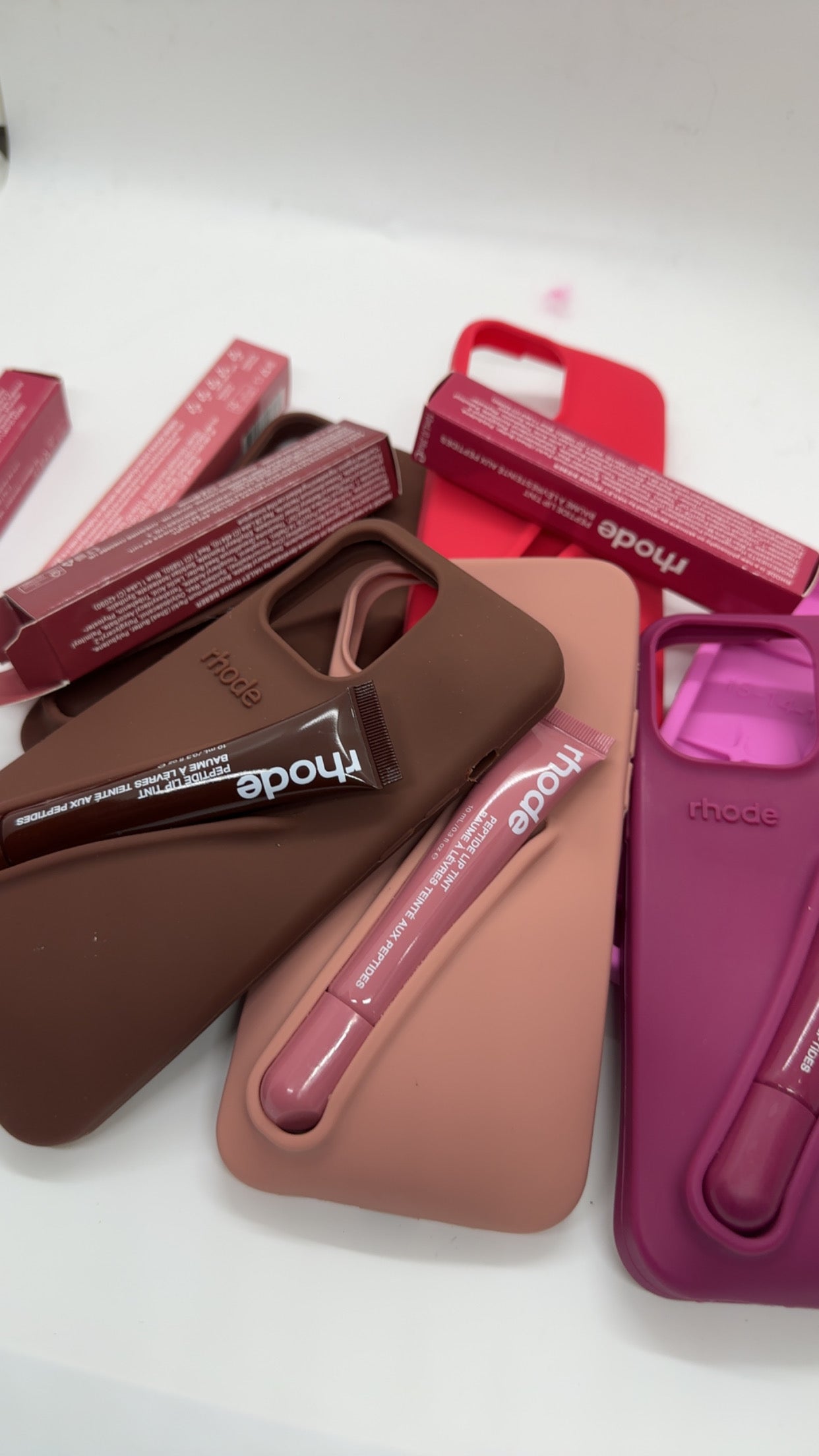 Your phone just got prettier — and more useful. This Rhode-inspired phone case comes with a sleek built-in lip gloss slot, so your favorite gloss is always right where you need it. No more digging through bags — just pop, gloss, and go.